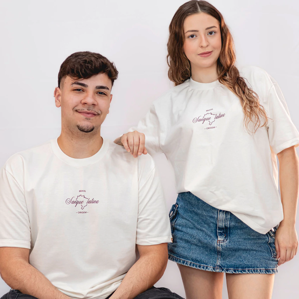 Confeccionada em moletinho 100% algodão, a camiseta Sangue Latino une conforto e presença em uma modelagem oversized, com gola em ribana estruturada e toque macio.